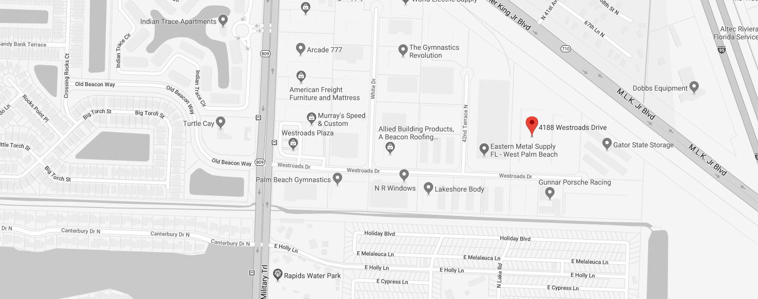 Located in Sunny South Florida in Palm Beach County. Serving the areas in and around West Palm Beach, Jupiter, Lake Worth, Stuart, Palm Bay, Daytona, Fort Lauderdale, Miami, Fort Myers, Tampa, and Orlando, FL