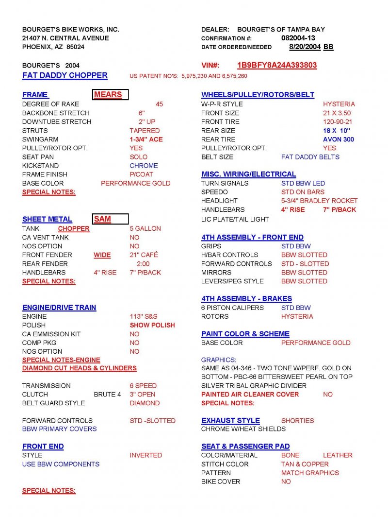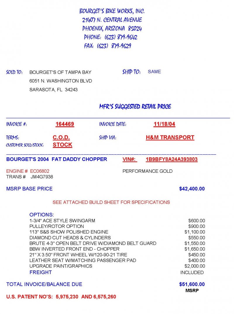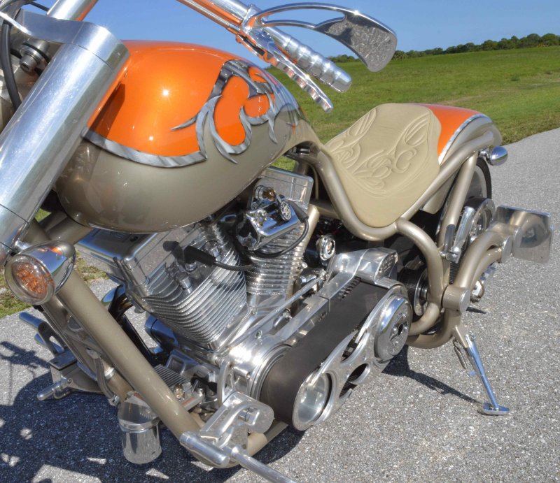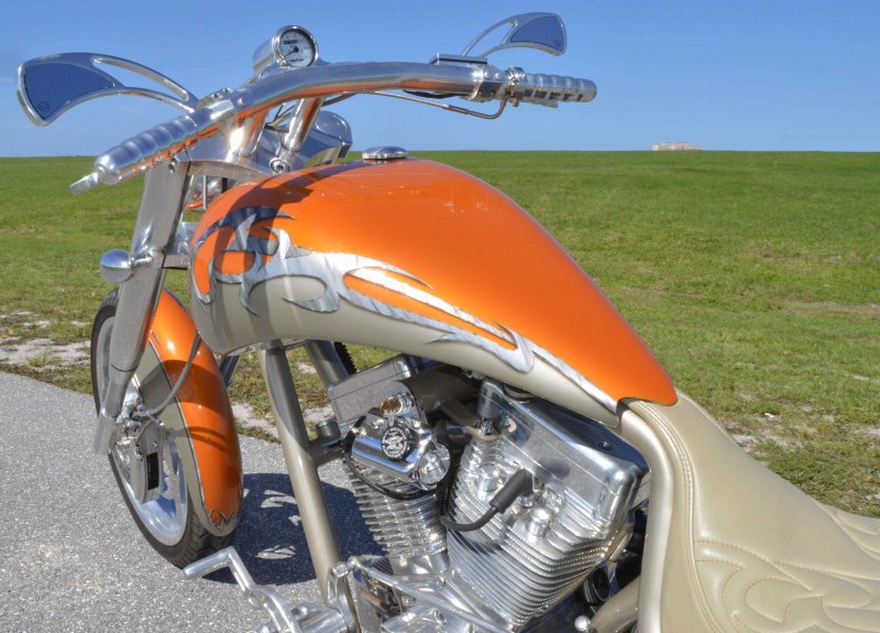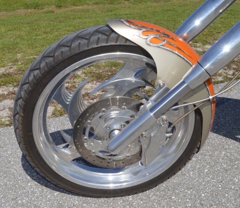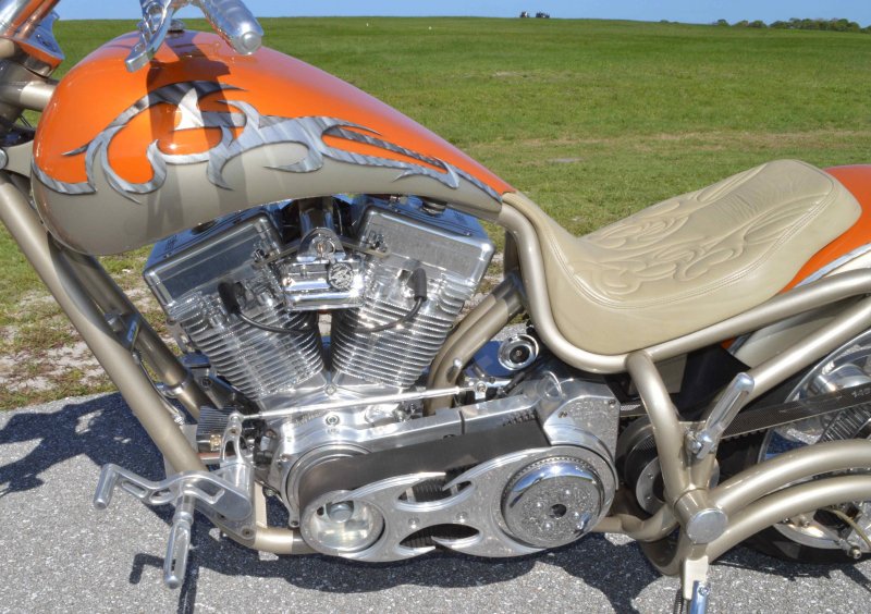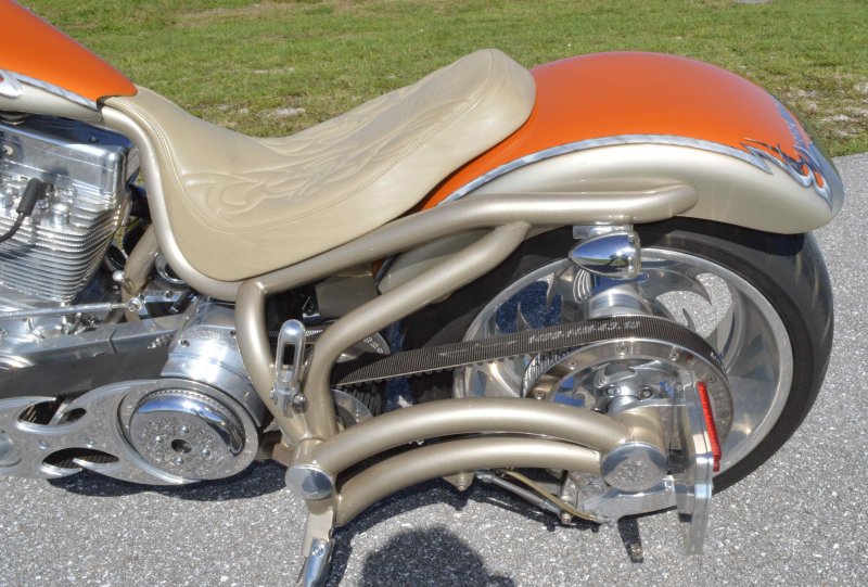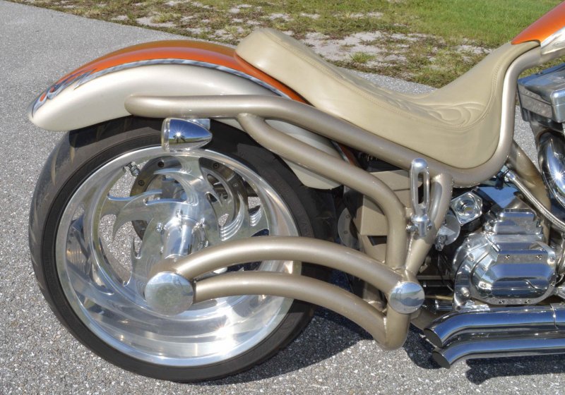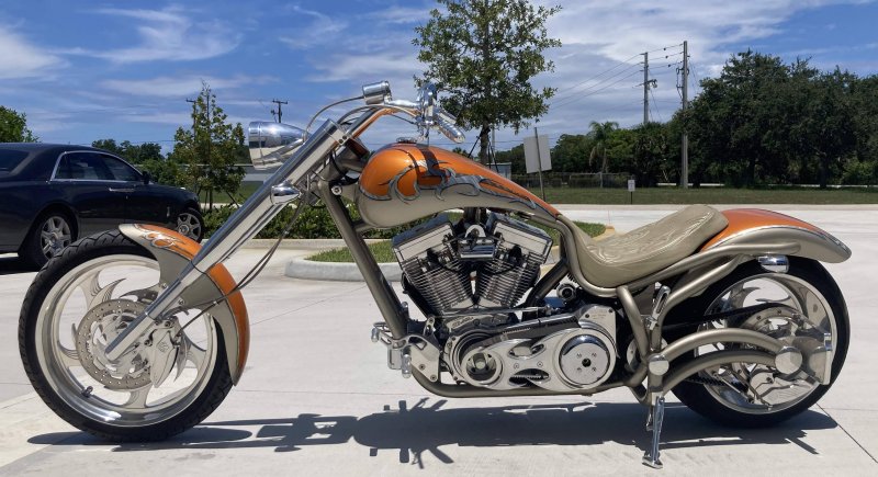 2004 BOURGET BIKE WORKS FAT DADDY PRO-STREET 300 SOFTAIL CHOPPER, One Owner, only 1,698 Miles, Excellent Showroom Condition. Upgraded Dinos Custom Paint and Graphics; Lamborghini Orange Pearl with Silver/Champaign Gold Pearl with a Silver/Charcoal Pearl Tribal Blade Graphic Divider all Covered in several Layers Of Clear Coat, Black Cherry Pearl Frame, Complete Show Polish Package on Entire Bike, 21 X 3 ½ inch Front Wheel, Metzler Tire in Excellent Condition, 18 X 10 inch Rear Wheel, Fat Avon 300mm Rear Tire in Excellent Condition, BBW Hysteria Aluminum Billet Wheels, Matching Pulley & Brake Discs, Optional Show Polished 113ci S&S Engine 1851cc with an astounding 128HP, Optional Diamond Cut Jugs, Bourget Embossed Rocker Lids, 6 Speed Jims Transmission, Optional Primo Brute 3 inch Open Belt Primary with a Bourget Show Polished Tribal Blad Belt Guard, Show Polished Inner Primary, BBW Dual Exhaust Shorties Chrome Pipes, Twin Cam Ignition Charging System, S&S Carburetor, Chrome SS Air Cleaner Cover, Optional Chrome BBW Inverted Front End 47 Degree Rake, Chrome Handlebars BBW Billet Hand Grips, Show Polished BBW Hand Controls, Show Polished Switch housings, Diamondback SS Stainless Steel Brake, Clutch & Throttle Cables, BBW Billet Polished Mirrors, Chrome Bradley 5-3/4 inch Headlight, 5 Gallon fuel tank, Optional Leather Seat Includes matching Passenger Seat Pad, Low Center of Gravity 24 inch Seat Height, BBW Slotted Foot Pegs for Driver and Passenger, Show Polished Brake and Foot Shift Leavers, Show Polished Front and Rear Dual 6 Piston Brake Calipers, Optional Rear Brake Rotor and Belt Drive Pulley, Chrome BBW Kickstand, Mini Polished Speedometer / Odometer, Only 1,698 Miles, Chrome BBW Side License Plate Bracket, {MSRP NEW $54.350.00, I have in Hand Original Build Sheet from BOURGET BIKE WORKS showing all Parts and Options} Chopper Runs Perfect and is in Excellent Showroom Condition. $17,995.00, Please Call 561.252.7800 to schedule appointment. Bike Running on Youtube - https://youtu.be/dn8PlNOHs2M