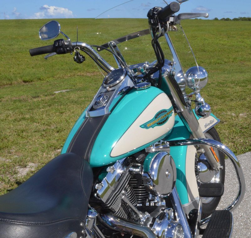 2005 HARLEY DAVIDSON SOFTAIL HERITAGE CLASSIC EFI FLSTCI, Excellent Condition, 1 Owner, $4,500.00 Upgrades, Very Rare to Find This Stunning Upgraded Paint: Two-tone Luxury Teal Pearl / Glacier White Pearl, 1450cc Big Twin, Electronic Fuel Injection, Upgraded HD Stage One Screamin Eagle Tuner, Supertrap Performance Exhaust Pipes, SE Intake and Chrome Breather then Dyno Tuned at Patriot Harley Davidson so It Runs Perfectly. Chrome Lace Wheels, Brand New Tires, Chrome Motor Guard, Chrome Mirrors, Upgraded Heated Hand Grips, Chrome and Rubber Floor Boards, Chrome and Rubber Brake Pedal, Chrome Swept Wing Shifter Pegs, Optional Security System, Battery tender hook up, 21,173 miles, Well Maintained and Always Garaged, Never been dropped, No Dents or Dings, Just went through Service for: Safety Check, New Tires, Tune Up, Mobil Synthetic Oil Change with Filter and all Gaskets, Brake fluid flushed and new DOT Fluid, Professional Detail, Everything in Perfect working order; Runs Perfect, Excellent Condition, $7,995.00, Please Call 561.252.7800 to make Appointment to see this bike. Video of Bike Running on youtube - https://youtu.be/F4UDRVvEIxk