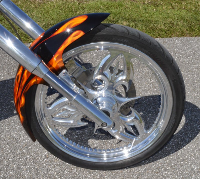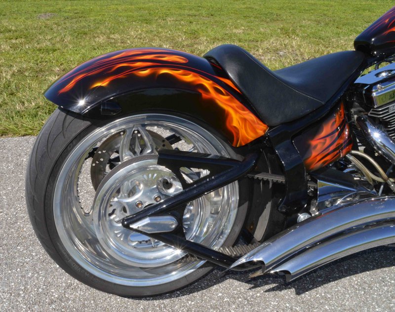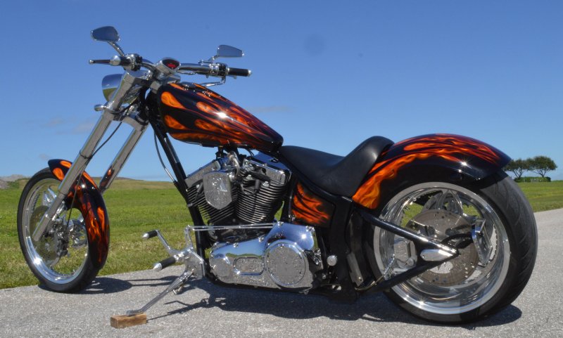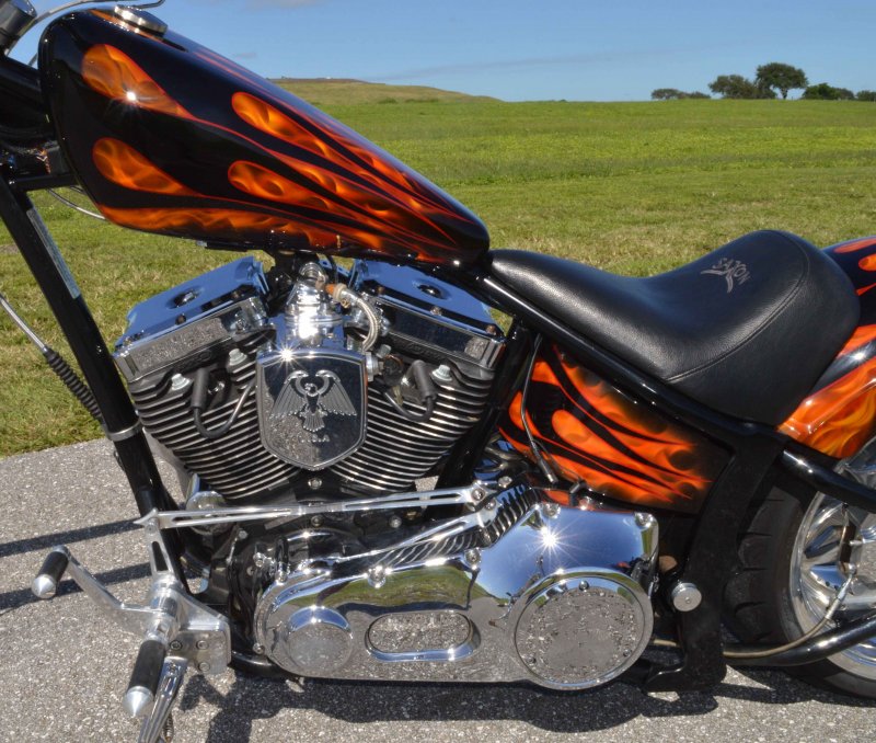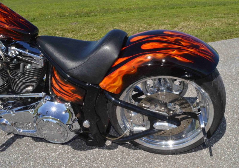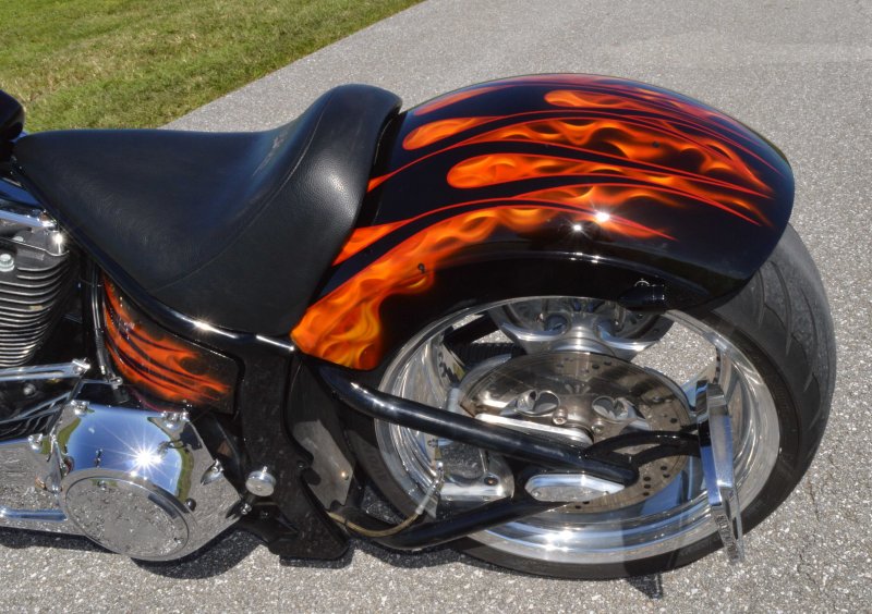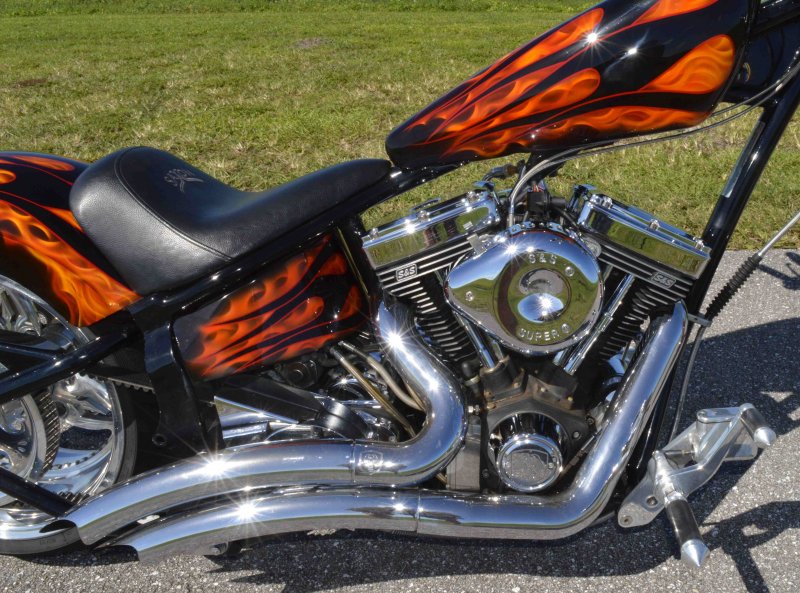 2006 SAXON GRIFFIN 300mm REAR TIRE SOFTAIL CHOPPER, Many Extras and Upgrades. Excellent Condition. Only 11,525 Miles, Stage 5 Custom Tribal Flame Paint Job, Optional S&S 111ci Ground Pounding 1818cc Motor, with Chrome Vance and Hines Wide Radius Dual Pipes, Chrome S&S Teardrop Air Cleaner w Screamin Eagle Breather, Chrome Rocker Boxes w lids, Chrome Inner Primary, Chrome Outer Primary, Chrome Primary Derby Cover, 6 Speed Transmission. Chrome Inverted Forks Front End, Chrome Headlight with LED Daylighter headlamp, Chrome Bullet Turn Signals, Chrome Pullback Handlebars, Chrome Hand Grips, Chrome Hand Controls, Chrome Switch housings, Chrome Brake and Clutch Levers, SS Diamondback Stainless Steel Brake, Clutch, Throttle Cables, Chrome and Rubber Billet Grips. RC Show Polished Aluminum Billet Wheels, Matching Show Polished Front & Rear Brake Rotors, Front & Rear H-D Dual Piston Chrome Brake Calipers, Avon 21 inch Front Tire, Avon 300mm Rear Tire, Excellent 85% Condition Tires, 5 Gallon fuel tank, 25 inch Seat Height, low center of gravity with Chrome Progressive Softail Suspension Shocks, Show Polished Aluminum Billet and Rubber Foot pegs, Show Polished Aluminum Billet Brake & Shift Leavers, Painted to match Oil Tank. Only 11,525 Miles, Very Well Maintained, Just Went through Service for: Safety Inspection, Carburetor cleaned with entire re-build kit, Fresh Oil Change and Filter, Brake Lines Flushed with new fluid, Brand New Battery with tender tail, Excellent Condition. $11,995.00, Please Call 561.252.7800 to make Appointment to see this bike. Video of Bike Running on youtube - https://youtu.be/ngMQkNVf7G8