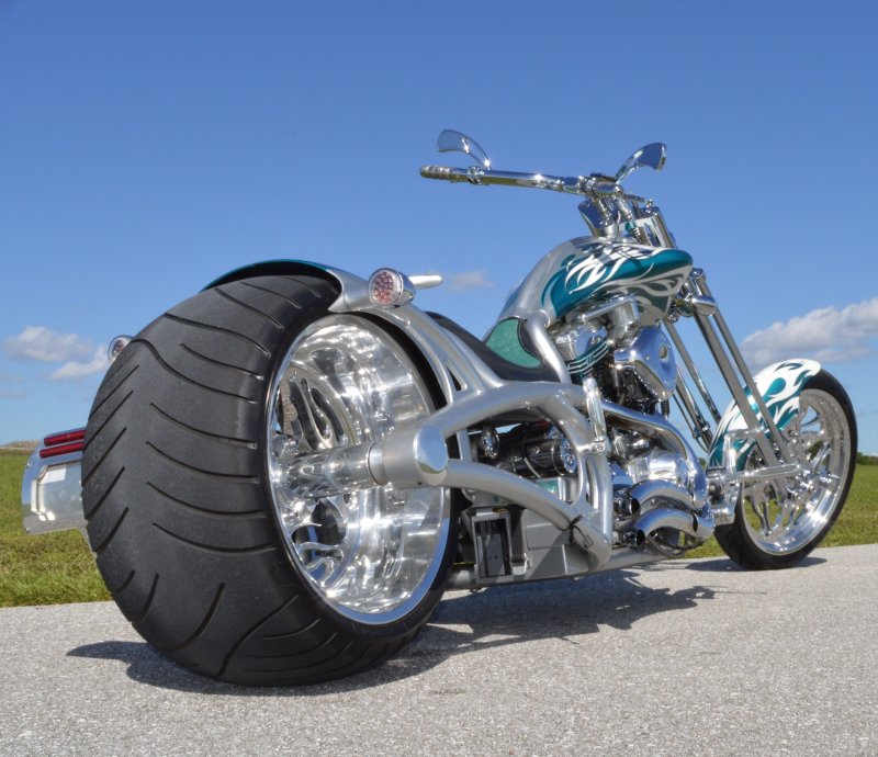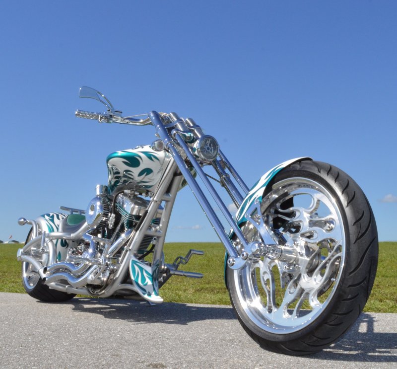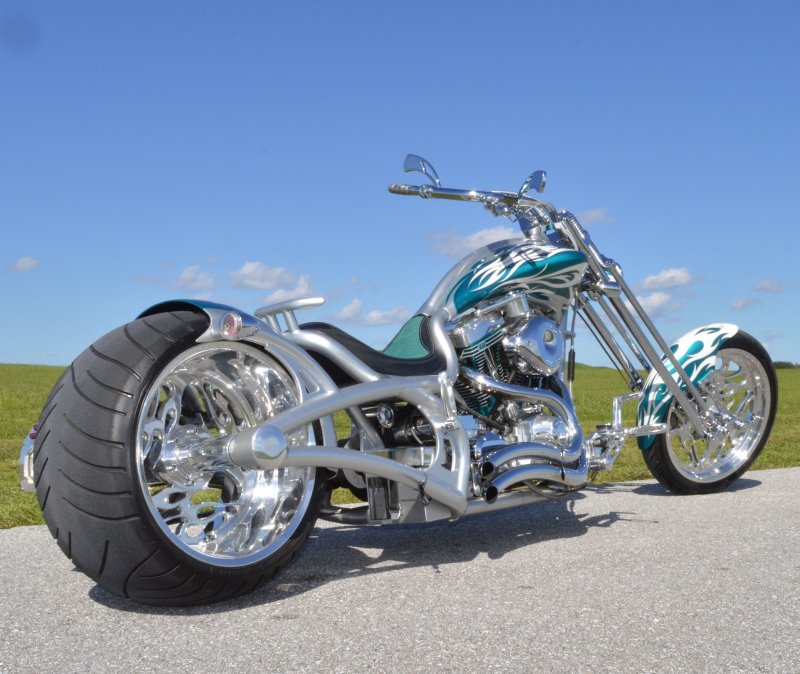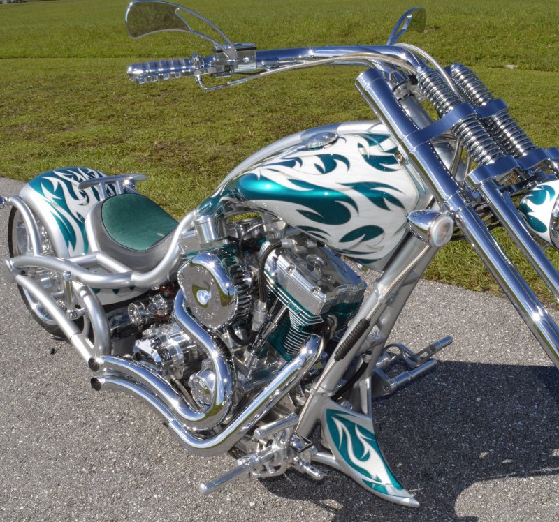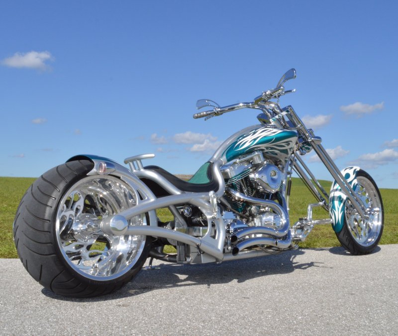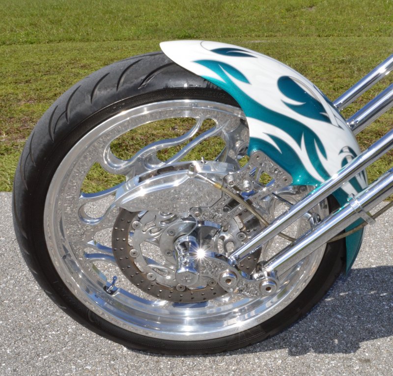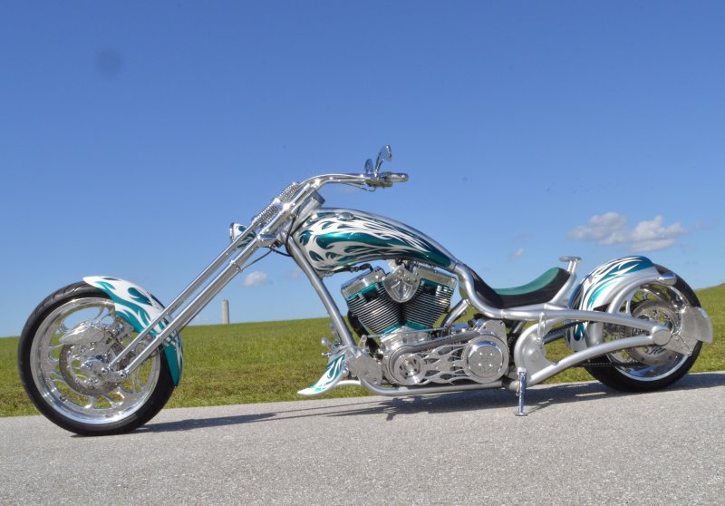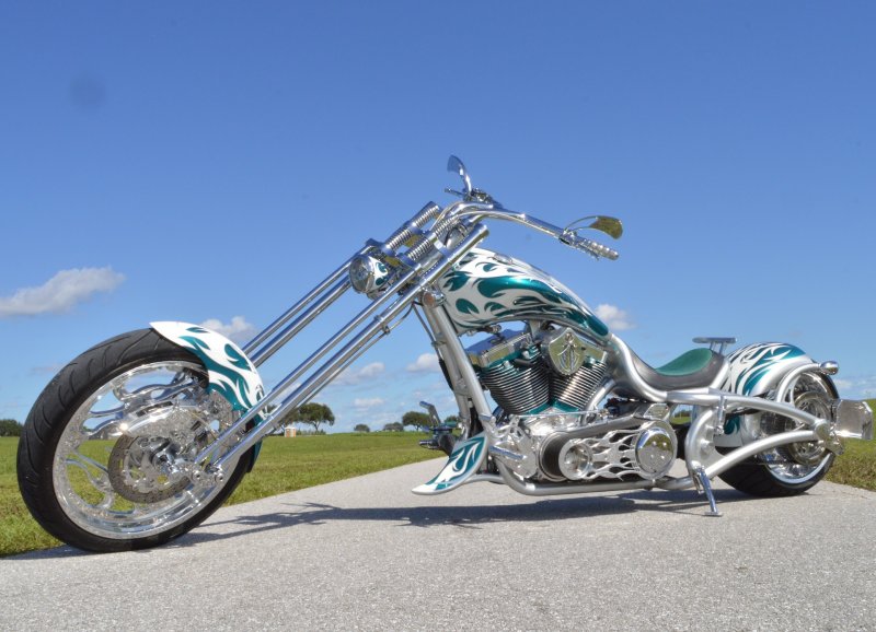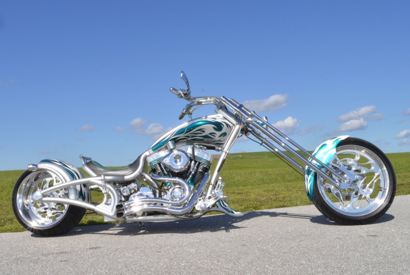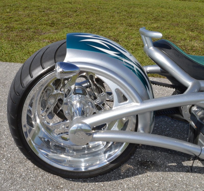 2010 BOURGET PYTHON SUPER STRETCH LIMO COBRA SPRINGER 330 REAR TIRE CHOPPER, Showroom Mint Condition. Only 10,145 Miles. New Style Super Stretch Frame with Optional Larger and Wider Cobra Split Fuel Tanks with Exposed Backbone with optional 6-inch Stretch Rear frame-arm with optional Retro Air Dam Painted to match. Custom Order Paint by Steel Visions: Kandy Teal Flake Base with Pearl Escalade White Devil Tail Flames All Covered in Many Layers of Clear Coat, Orion Silver Flake Frame, Complete Show Polish Package on Entire Bike. Optional 124ci S&S Engine 2032cc with an astounding 148HP, Optional Diamond Cut Jugs with Kandy Teal Powdercoat, BBW Show Polished Rocker Boxes, Jims Fat 5 Overdrive 6 Speed Transmission, Optional Primo Brute V 3-1/2 inch Open Belt Primary with a Bourget Cut Out Flames Belt Guard, BBW Swoopies True Dual Exhaust Pipes w/ Chrome Heat Shields, Show Polished Inner Primary, Twin Cam Ignition Charging System, Chrome S&S Air Cleaner Cover, electronic compression releases. Pyromaniac Show Polished Billet Wheels, Optional 17 X 12 inch Rear Wheel w/ Brand New Fat Avon 330mm Rear Tire, Optional 21 X 3 ½ inch Front Wheel w/ Fat 120/90/21 Avon Tire in Excellent Condition, Matching Pyromaniac Pulley & Pyromaniac Brake Rotor Discs. Optional Chrome BBW Springer Front End 47 Degree Rake with Chrome Springs, Chrome Chopper Handlebars, Show Polished BBW Hand Controls with BBW Slotted brake and clutch Levers, Optional Chrome Rocker Switch Controls, BBW Billet Hand Grips, Diamondback SS Stainless Steel Brake, Clutch and Throttle Cables, BBW Billet Polished Mirrors, Chrome Headwinds 4.5-inch Headlight Painted to match. Optional Black Leather and Teal Stingray Solo Seat with Limo Grab Bars, Low Center of Gravity 24-inch Seat Height, BBW Slotted Foot Pegs for Driver and Passenger, Show Polished BBW solid Brake and Foot Shift Leavers, Show Polish Front and Rear Dual 6 Piston Brake Calipers, Optional Rear Brake Rotor and Belt Drive Pulley, Chrome BBW Kickstand. Dakota Digital Speedometer/Odometer BBW Side Mount to Rockerbox, Chrome Bullet Turn Signals w LED Lights, Chrome BBW Side License Plate Bracket w LED Lighting. {I have in Hand Original Build Sheet from BOURGET BIKE WORKS showing all Parts and Options, Original MSRP $60,775.00} Just Went through Service For: Safety Check, Brand New Avon 330mm Rear Tire, Carb clean with new seals and jets, Brakes flushed and Serviced, Fresh Motor Oil and Filter, New Battery with tender tail. Only 10,145 Miles. Chopper Runs Perfect and is in Excellent Showroom Condition. $34,995.00, Please Call 561.252.7800 To Schedule an Appointment to See this Bike. Bike Running on Youtube - https://youtu.be/XQcqCn3Zp_c