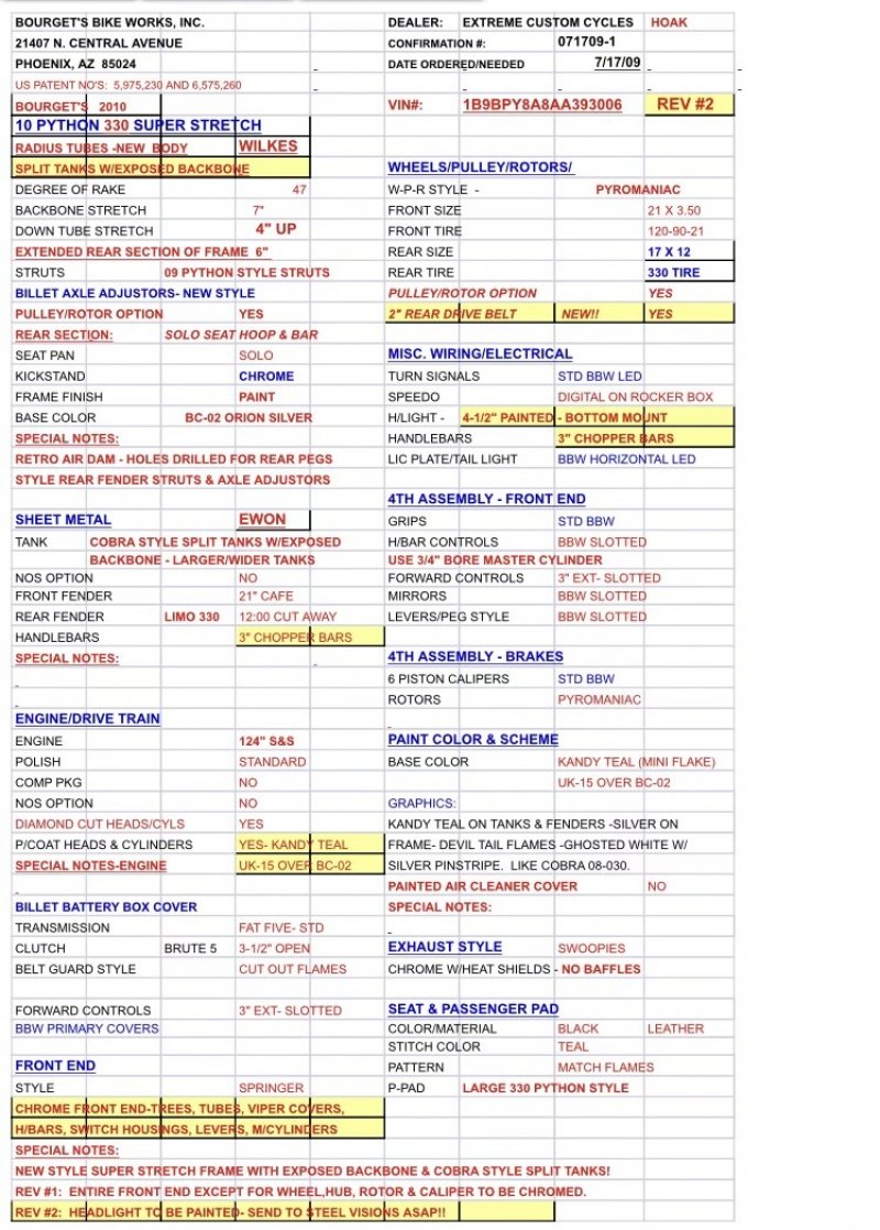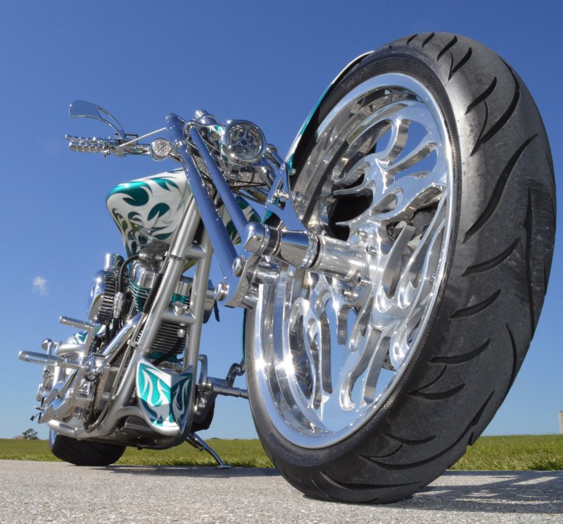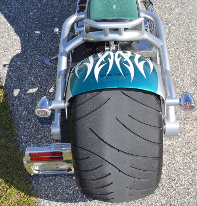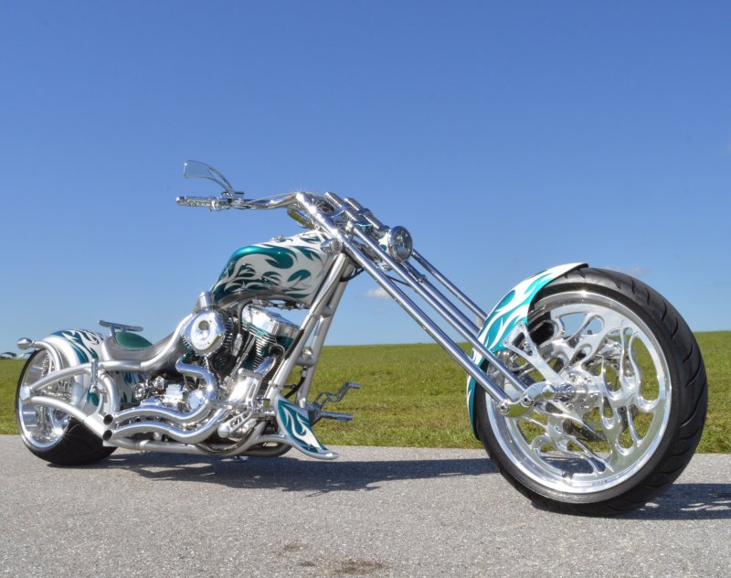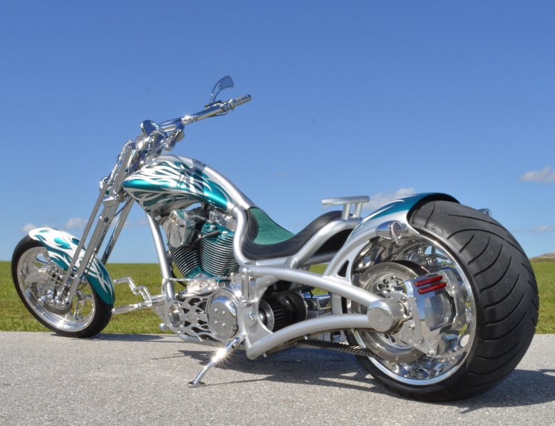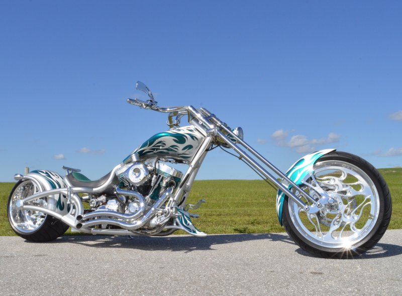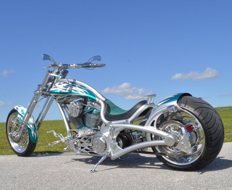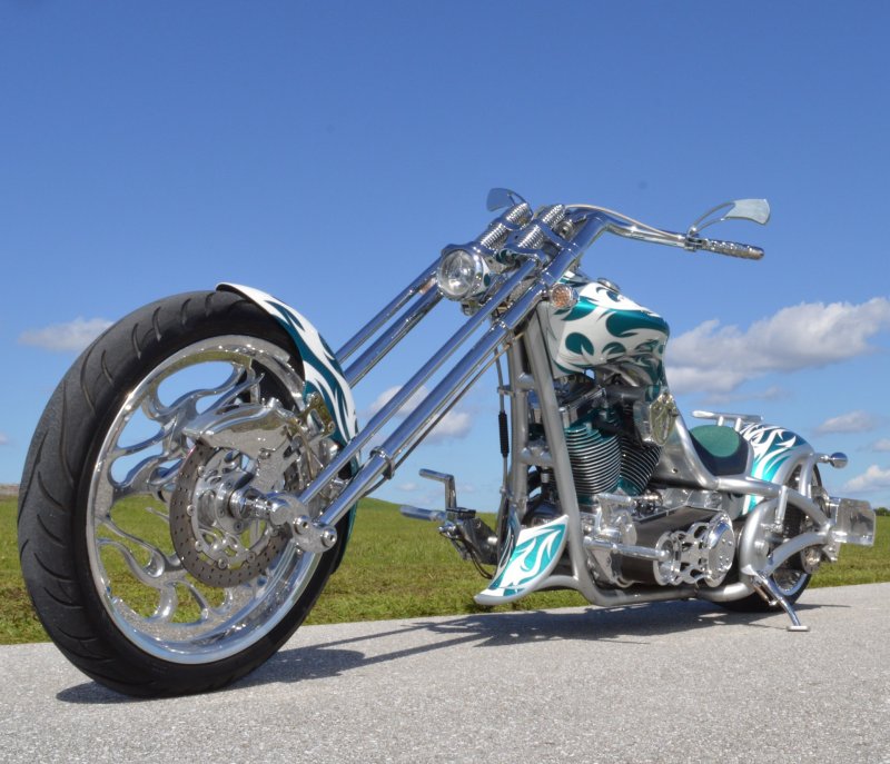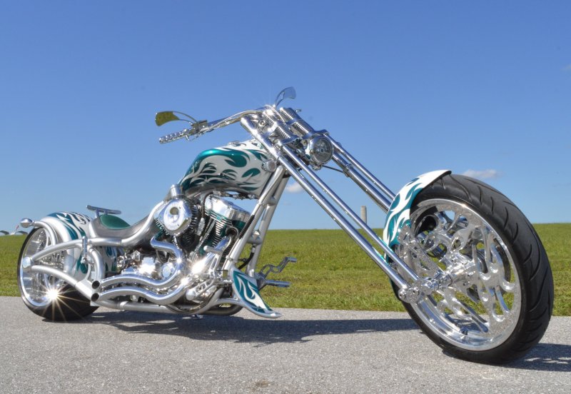 2010 BOURGET PYTHON SUPER STRETCH LIMO COBRA SPRINGER 330 REAR TIRE CHOPPER, Showroom Mint Condition. Only 10,145 Miles. New Style Super Stretch Frame with Optional Larger and Wider Cobra Split Fuel Tanks with Exposed Backbone with optional 6-inch Stretch Rear frame-arm with optional Retro Air Dam Painted to match. Custom Order Paint by Steel Visions: Kandy Teal Flake Base with Pearl Escalade White Devil Tail Flames All Covered in Many Layers of Clear Coat, Orion Silver Flake Frame, Complete Show Polish Package on Entire Bike. Optional 124ci S&S Engine 2032cc with an astounding 148HP, Optional Diamond Cut Jugs with Kandy Teal Powdercoat, BBW Show Polished Rocker Boxes, Jims Fat 5 Overdrive 6 Speed Transmission, Optional Primo Brute V 3-1/2 inch Open Belt Primary with a Bourget Cut Out Flames Belt Guard, BBW Swoopies True Dual Exhaust Pipes w/ Chrome Heat Shields, Show Polished Inner Primary, Twin Cam Ignition Charging System, Chrome S&S Air Cleaner Cover, electronic compression releases. Pyromaniac Show Polished Billet Wheels, Optional 17 X 12 inch Rear Wheel w/ Brand New Fat Avon 330mm Rear Tire, Optional 21 X 3 ½ inch Front Wheel w/ Fat 120/90/21 Avon Tire in Excellent Condition, Matching Pyromaniac Pulley & Pyromaniac Brake Rotor Discs. Optional Chrome BBW Springer Front End 47 Degree Rake with Chrome Springs, Chrome Chopper Handlebars, Show Polished BBW Hand Controls with BBW Slotted brake and clutch Levers, Optional Chrome Rocker Switch Controls, BBW Billet Hand Grips, Diamondback SS Stainless Steel Brake, Clutch and Throttle Cables, BBW Billet Polished Mirrors, Chrome Headwinds 4.5-inch Headlight Painted to match. Optional Black Leather and Teal Stingray Solo Seat with Limo Grab Bars, Low Center of Gravity 24-inch Seat Height, BBW Slotted Foot Pegs for Driver and Passenger, Show Polished BBW solid Brake and Foot Shift Leavers, Show Polish Front and Rear Dual 6 Piston Brake Calipers, Optional Rear Brake Rotor and Belt Drive Pulley, Chrome BBW Kickstand. Dakota Digital Speedometer/Odometer BBW Side Mount to Rockerbox, Chrome Bullet Turn Signals w LED Lights, Chrome BBW Side License Plate Bracket w LED Lighting. {I have in Hand Original Build Sheet from BOURGET BIKE WORKS showing all Parts and Options, Original MSRP $60,775.00} Just Went through Service For: Safety Check, Brand New Avon 330mm Rear Tire, Carb clean with new seals and jets, Brakes flushed and Serviced, Fresh Motor Oil and Filter, New Battery with tender tail. Only 10,145 Miles. Chopper Runs Perfect and is in Excellent Showroom Condition. $34,995.00, Please Call 561.252.7800 To Schedule an Appointment to See this Bike. Bike Running on Youtube - https://youtu.be/XQcqCn3Zp_c