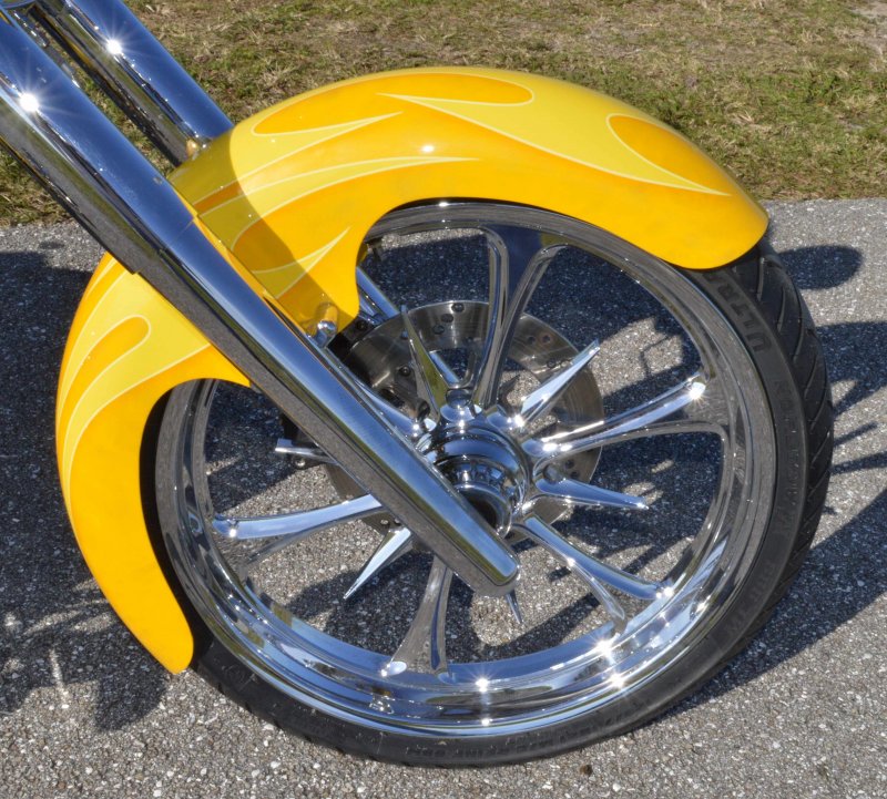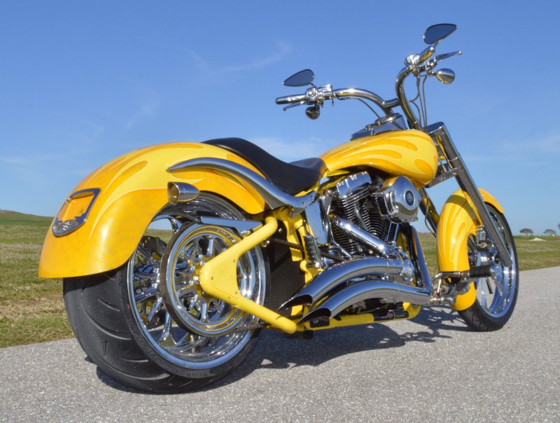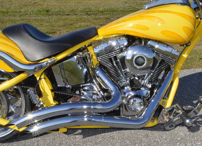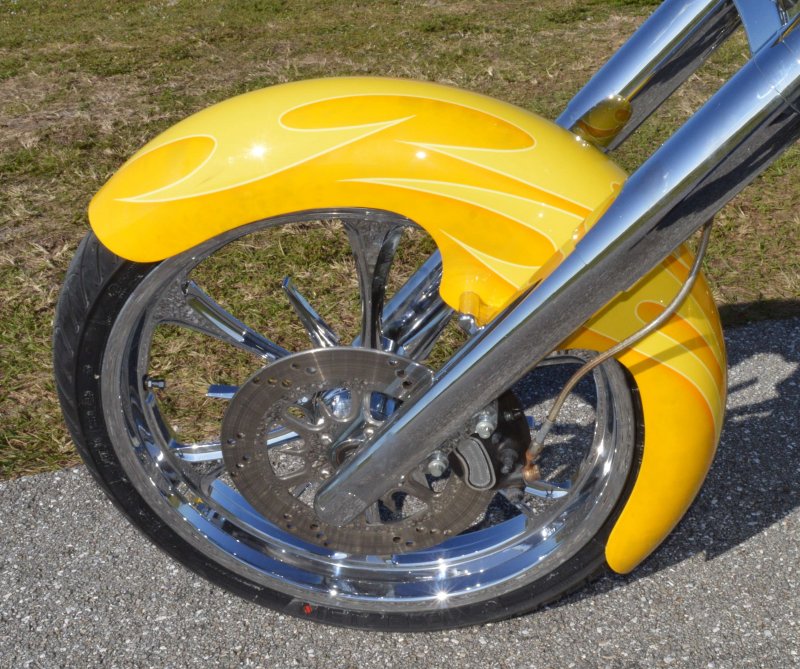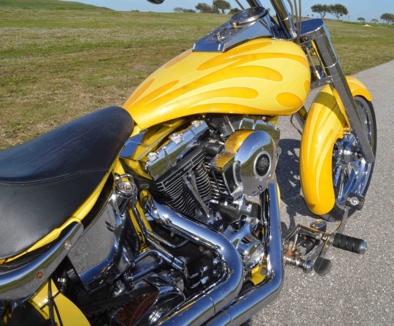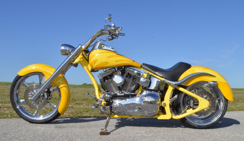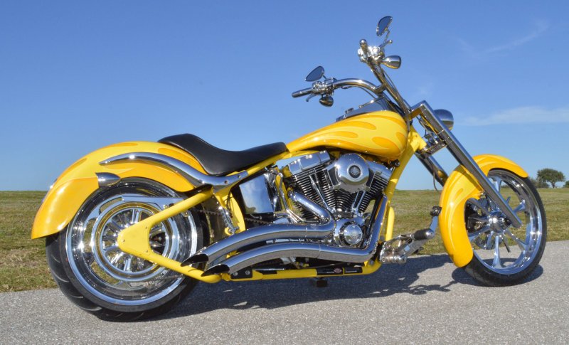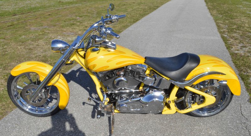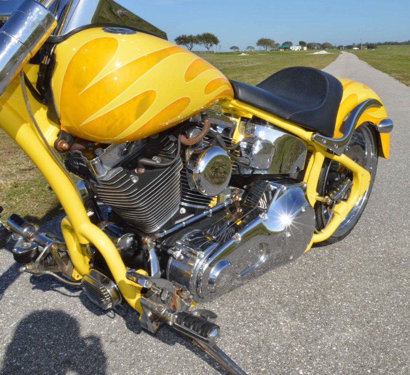 2008 THUNDER MOUNTAIN FIRESTONE SOFTAIL FAT TIRE CHOPPER SCREAMIN EAGLE, One Owner. Runs Perfect. Excellent Condition. Only 6,693 miles. Original price was $39,995.00, Optional Stage 5 Gunslinger Custom Paint Job: Sunset Tangerine Pearl Base with Sunrise Yellow Tribal Blade Graphix, Harley Davidson Screamin Eagle 103ci V-Twin 1690cc Motor, Twin Cam SE Race Kit, 6 Speed Baker Transmission, Vance and Hines Wide Radius Dual Exhaust Pipes, Chrome Batwing Intake w/ Screamin Eagle Air filter, Professionally Dyno Tuned to a Smooth Road Pounding Beast, Chrome Inner & Outer Primary’s, Chrome Oil Tank. RC Component Chrome Aluminum Billet Wheels, Brand NEW FAT 280mm Rear Metzler Tire, Brand NEW 21-inch Metzler Front Tire, Matching Chrome H-D Front and Rear Brake Disk Rotors, H-D Front and Rear Dual Piston Brake Calipers. Chrome American Suspension Front End with Chrome Lowers and Triple Trees, Chrome Arlen Ness oversize Billet Headlight with LED Light, Chrome Fatty Handlebars, Chrome Hand Levers, Chrome Hand Grips, Chrome CVO Hand Controls, Chrome Switch CVO housings, Chrome Switch modules, Diamond Back Stainless Steel Brake, Clutch & Throttle Cables, Chrome and Rubber H-D Nostalgic Foot pegs, Chrome CVO Brake & Shift Leavers, 5 Gallon fuel tank, LED Fuel Gauge Lights, Chrome Bullet Turn Signal all with LED Lights, 25 inch Seat Height With Custom Alligator and Ostridge Seat, low center of gravity with Progressive Softail Suspension. 90% of this Chopper is Premium Harley Davidson Components - Thunder Mountain Customs were sold Exclusively through the Harley Dealer Network. All Harley components; getting parts and service is simple, and it can be worked on by any Harley Dealership or Mechanic, Just Had a $2,000 Service for: Safety Inspection, Brand New Metzler Tires, New battery with tender, New Motor Oil and filter, New Transmission Oil service, New primary Oil Service, Flush and replace brake fluid, Full Detail. Only 6,693 miles. Runs Perfect, Excellent Condition. $16,995.00 Please Call 561-252-7800 to schedule an appointment. Video of Bike Running on youtube - https://youtu.be/3uC7-ZuYkPU