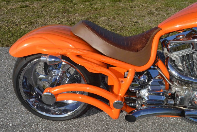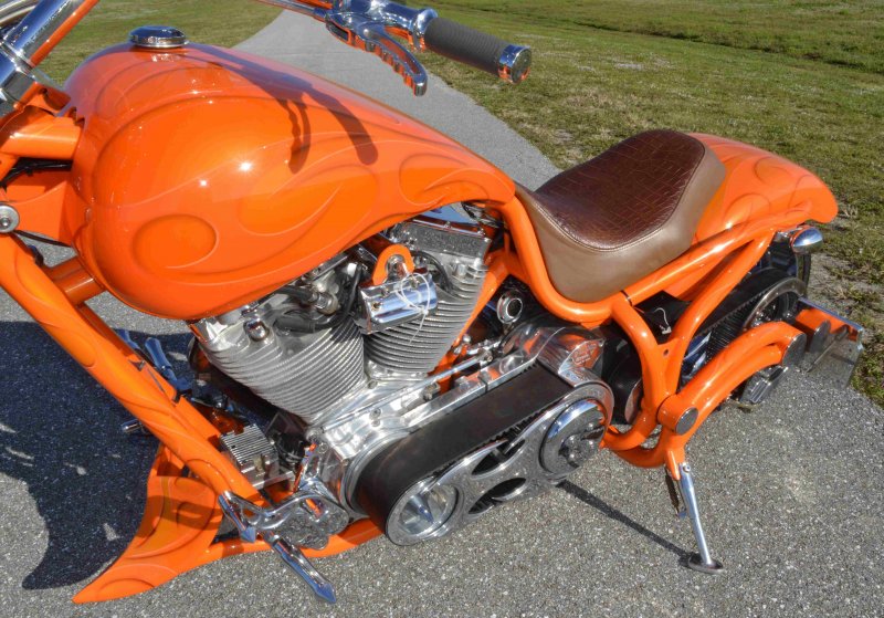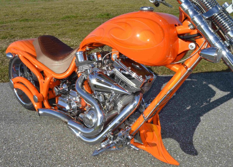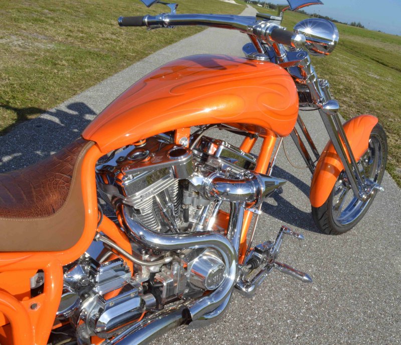 2005 BOURGET SPRINGER FAT DADDY 330 SOFTAIL CHOPPER, Low Milage in Excellent Condition. Custom Deano Paint Job; Sunrise Tangerine Pearl with Lamborghini Orange Pear Graphix All Covered in several Layers of Clear Coat, Matching Powder Coat Frame. Show Polished S&S 117ci Solid Billet 1917cc Engine with Diamond Cut and Polished Cylinders with the Chrome Rocker Heads, 6 Speed Jims Transmission, Primo Brute 3.5-inch Open Belt Primary with a Bourget Tribal Flame Guard, Bourget 2 into 1 Performance Exhaust with Chrome Heat Shields, Chrome Spike Air Cleaner Cover, Electronic Compression Releases, SS Stainless Steel Oil and Transmission Lines, Twin Cam Ignition Charging System. Optional Springer Chrome Front End, Chrome Handlebars 4 inch rise 9 inch pullback “Wires Run Inside” Aluminum Billet Hand Grips, Chrome Hand Controls, Chrome Switch housings, SS Stainless Steel Brake, Clutch & Throttle Cables, BBW Slotted Mirrors, 7 inch Mariah Chrome Billet Headlight with Daylighter Headlamp, BBW Chrome Bullet LED turn signals front and rear, 6 Gallon Fatso fuel tank, Genuine Crocodile and Leather Seat, Low Center of Gravity 24 inch Seat Height. Brand New FAT 330mm Avon Rear Tire, Brand New 21-inch Avon Front Tire, Bourget Tribal Magnum Hammer Chrome Billet Wheels, Matching Magnum Pulley and Floating Brake Rotor Discs, Chrome 6 Piston BBW Brake Calipers Front & Rear, Softail 330 Rear Swingarm, BBW Slotted Chrome Billet Foot Pegs, BBW Slotted Chrome Brake & Shift Leavers, Show Polished Inner Primary, Chrome Kickstand, Chrome Analog Odometer Speedometer. {I have in Hand Original Build Sheet from BOURGET BIKE WORKS showing all Parts and Options, Original Cost was $47,775.00} Just Went through Service For: Safety Check, Brand New Avon Tires front and rear, Carb clean with new seals and jets, Brakes flushed and Serviced, Fresh Motor Oil and Filter, New Battery with tender tail and Full Detail. Only 12,392 Miles, Excellent Condition Chopper that Rides Like a Fatboy, $16,995.00, Please Call 561.252.7800 To Schedule an Appointment to See this Bike. Bike Running on Youtube - https://youtu.be/LC_cb1bI2Mc