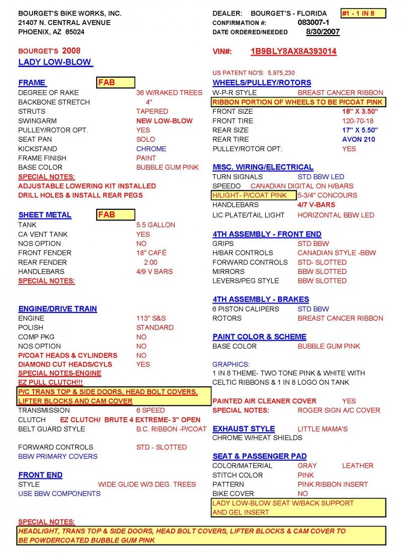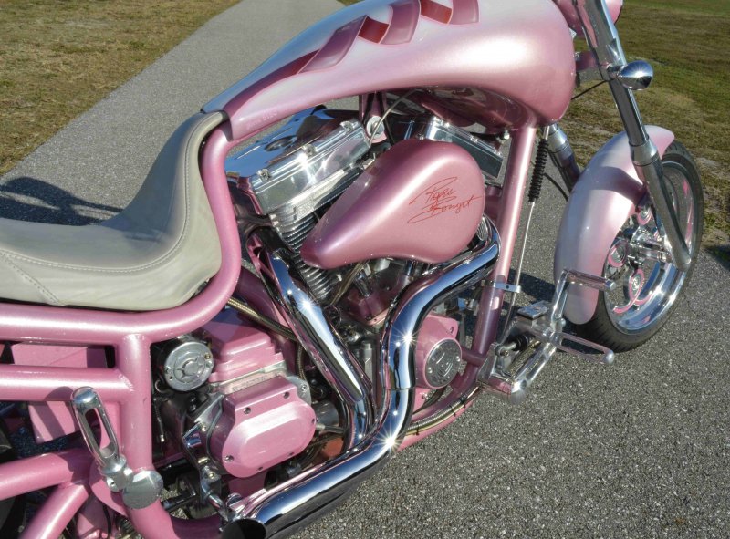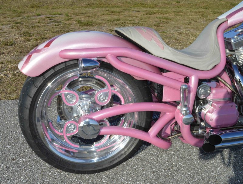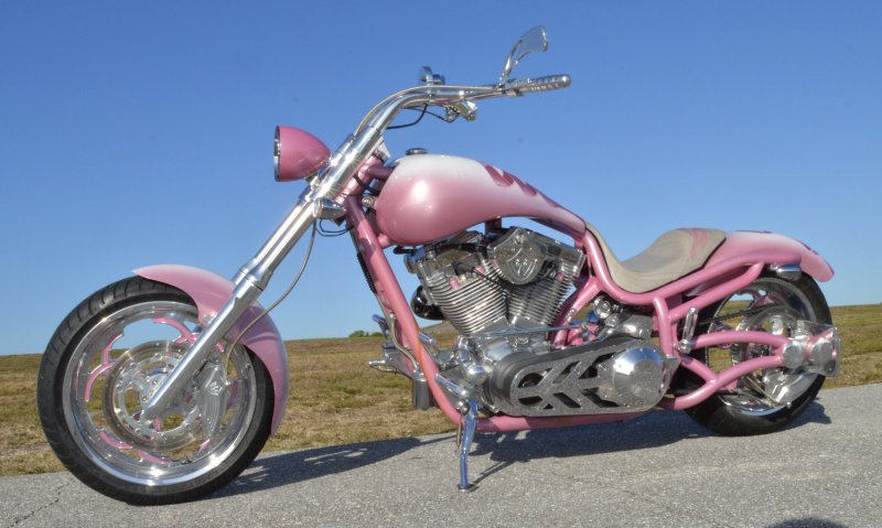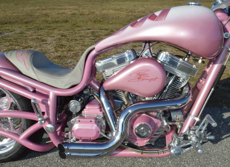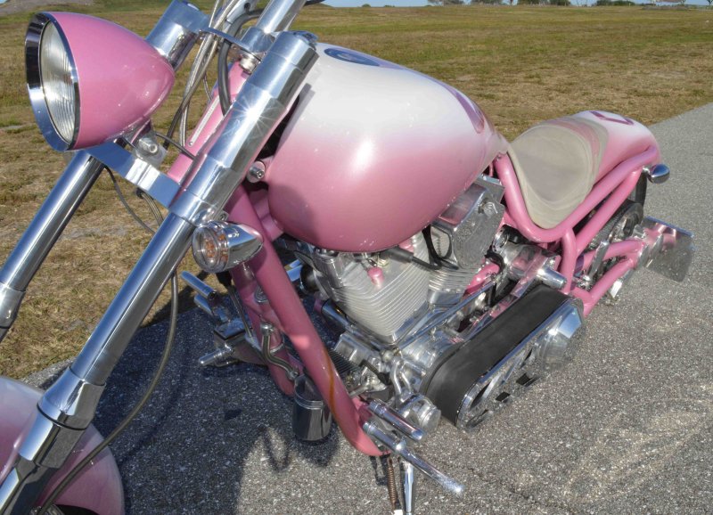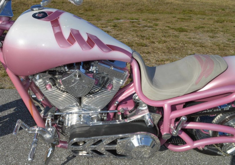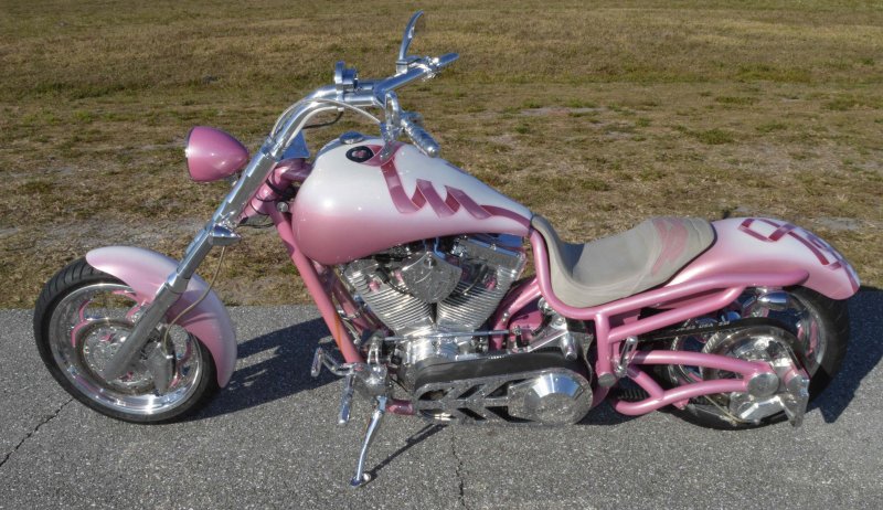 2008 BOURGET BIKE WORKS LOW BLOW SOFTAIL CHOPPER PINK PEARL BREAST CANCER AWARENESS 1 OF 8 BIKE {1 of 8 Women will develop Breast Cancer} Only 962 Miles. One Owner. Excellent Condition {This Very Rare Bourget Chopper is was custom built by Bourgets Bike Works for the 1 of 8 Breast Cancer Awareness Foundation to be Auctioned off at the Pink & White Party in South Beach Sponsored by Joaquin Bacardi of Bacardi Rum} Custom Painted by Airea 5150 Inc. Bubble-gum Pink Metallic Pearl with Escalade Whie Pearl with Pink Celtic Cancer Awareness Ribbons Graphix on rear fender and fuel tank All Covered in several Layers of Clear Coat, Matching Pink Metallic Pearl Frame. Show Polished S&S 113ci Solid Billet 1851cc Engine, Primo Brute 3.5 inch Open Belt Primary, Diamond Cut Cylinders with Pink Metallic Pearl Powdercoat and Show Polished Rocker Heads, Show Polished Inner Primary, Show Polished Outer Primary Cover, Pink Metallic Pearl Timer Housing w chrome Cover, Polished 6-Speed Jims Transmission with Pink Metallic Pearl Side and Top Covers, Chrome Bourget Dual Performance Exhaust, Pink Metallic Pearl Air Cleaner Cover with Rodger Bourgets Signature, Electronic Compression Releases, SS Stainless Steel Diamondback Oil and Transmission Lines, Twin Cam Ignition Charging System. Show Polished Front End, Polished V-Bars Handlebars 4 inch rise 7 inch pullback “Wires Run Inside” Aluminum Billet Hand Grips, Polished Hand Controls, Polished Switch housings, SS Stainless Steel Brake, Clutch & Throttle Cables, BBW Slotted Mirrors, 5.3/4 inch Concourse Billet Headlight painted Pink Metallic Pearl, BBW LED Chrome turn signals front and rear, 5 Gallon fuel tank, Genuine Leather Seat with Pink Cancer Awareness Ribbon Sewn in the backside, Low Center of Gravity 24 inch Seat Height, Show Polished Aluminum BBW One Of a kind CNC cut Billet 1 of 8 Wheels with Pink Cancer Awareness Ribbon wrapped around the 8, Matching 8 Pulley & Brake Rotor Discs, Polished 6 Piston BBW Brake Calipers Front & Rear, Softail Rear Swingarm, BBW Show Polished Billet Foot Pegs, BBW Show Polished Brake & Shift Leavers, Chrome Kickstand, Polished Digital Odometer Speedometer. {This was a Very Special build completed in 2008 then Auctioned off at a Cancer Awareness Event} I have in Hand Original Build Sheet from BOURGET BIKE WORKS showing all Parts and Options, Original Cost was $44,000.00} Just Went through Service For: Safety Check, Brakes flushed and Serviced, Fresh Motor Oil and Filter, New HD Battery with tender tail and Full Detail. No Mis-Print Only 962 Miles, From Florida where it lived in a climate-controlled showroom for its entire life, for all intents this bike is like Brand New Condition with Ridiculously Low Miles. $14,995.00, Please Call 561.252.7800 To Schedule an Appointment to See this Bike. Bike Running on Youtube - https://youtu.be/jpXWRgb4BcY
